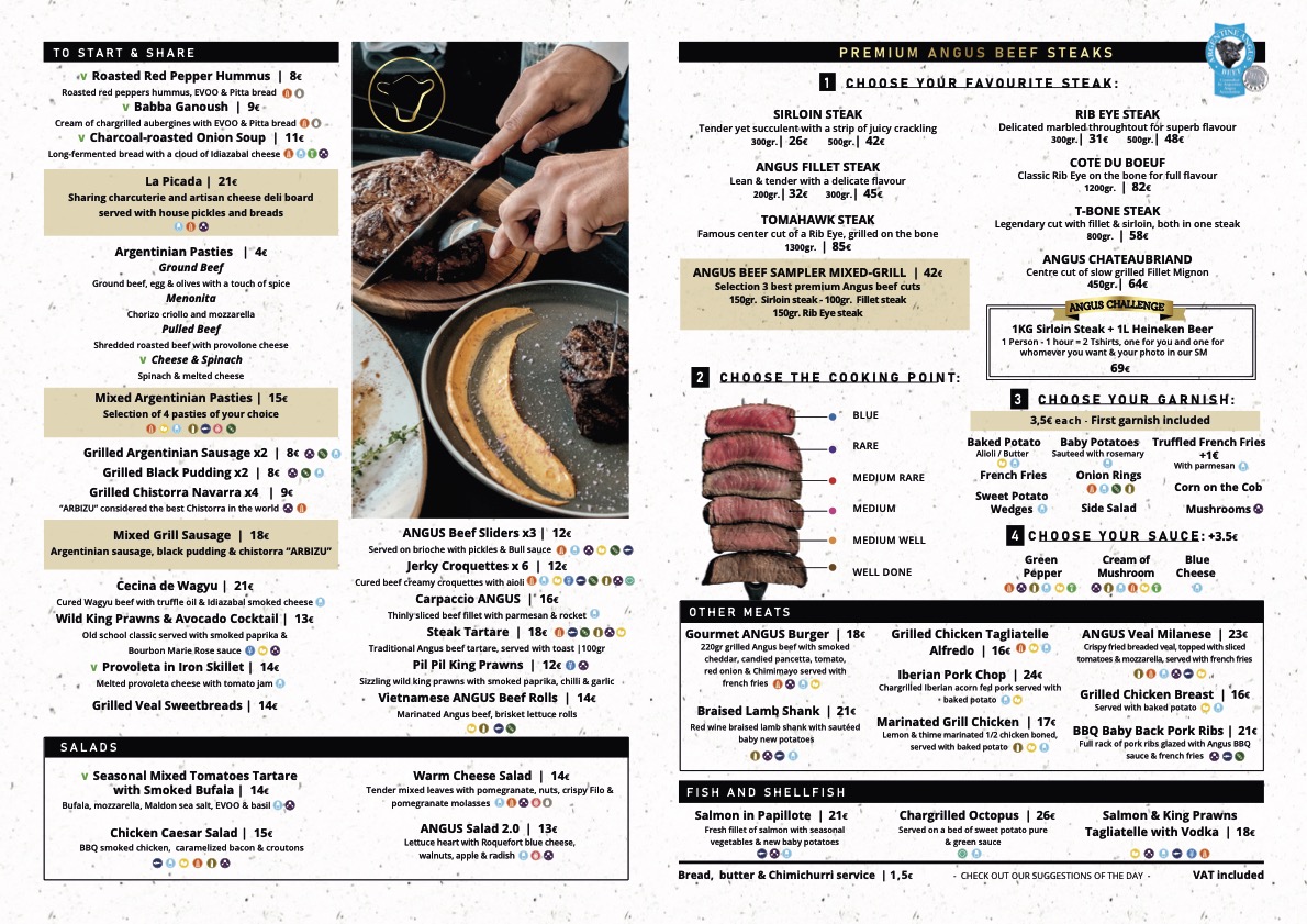 Continuing the tour you will find TORO-Taste of Spain, which bases its menu on traditional Spanish cuisine and national wines, and finally Tex Mex Gringos, our Mexican par excellence where you can enjoy our delicious fajitas, quesadillas, enchiladas, superb ANGUS steaks. and Texas size Angus beef burgers.